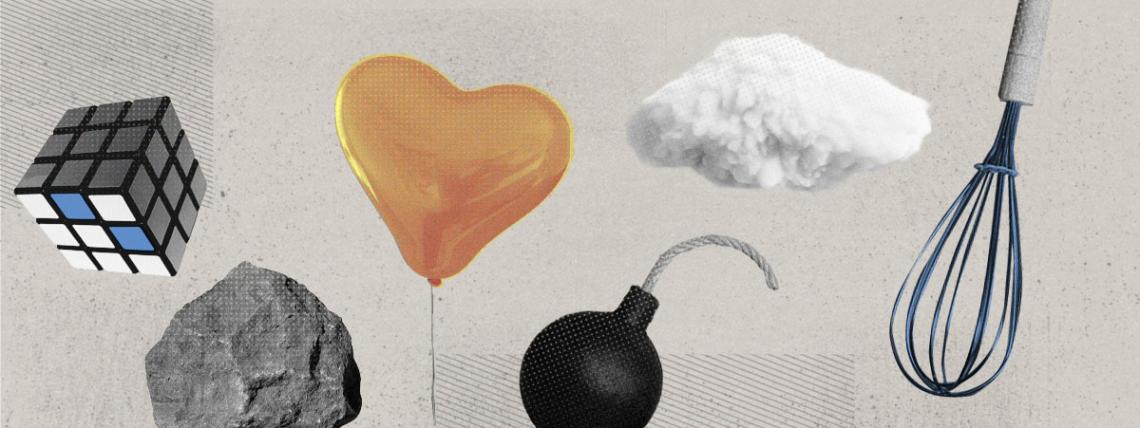 облако, шарик и кубик рубика